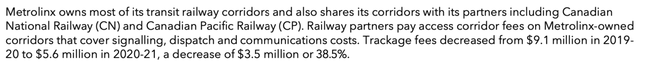 Ah, so the rate they get from CN covers their net dispatching costs, but not net track maintenance costs.From Metrolinx' most recent Annual Report: