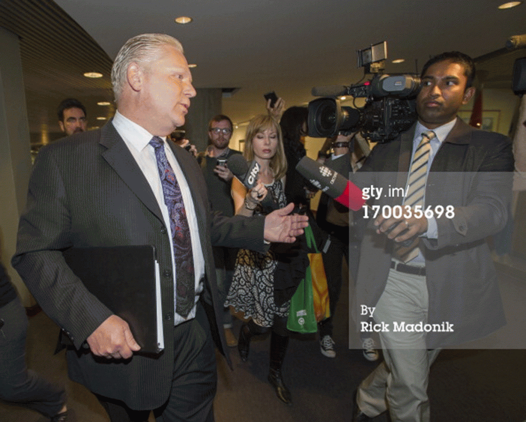 TORONTO, ON - JUNE 6: Mayor Rob Ford's brother, Toronto City councillor Doug Ford arrives at his office and when asked about comment of the house on Windsor Road, he replied, 'don't know what house you're talking about.' The house is where Mayor Rob Ford was photographed with murder victim Anthony Smith and another shooting victim and it is notorious for drug problems, according to people living in the area. Rob Ford is currently embroiled in a scandal after allegations surfaced that he was recorded on a cellphone video in front of this house smoking crack cocaine and making offensive remarks.